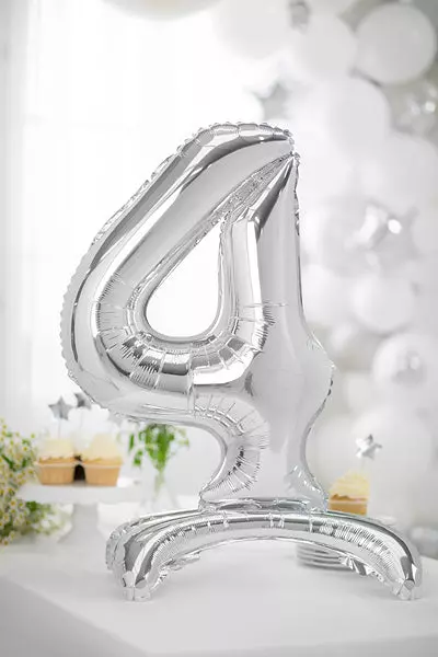 Metallisert stående folieballong i sølv, størrelse ca 70 cm.